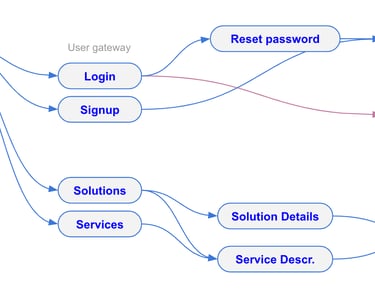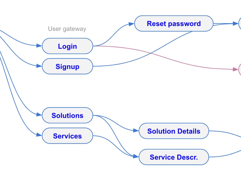Detailed site structure and user journey design including failure and success scenarios.