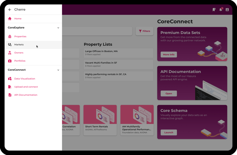 Powered by the Google's Material UI library, Cherre platform is designed to address the daily needs of Investors, Property Acquisition teams, Brokers, etc..